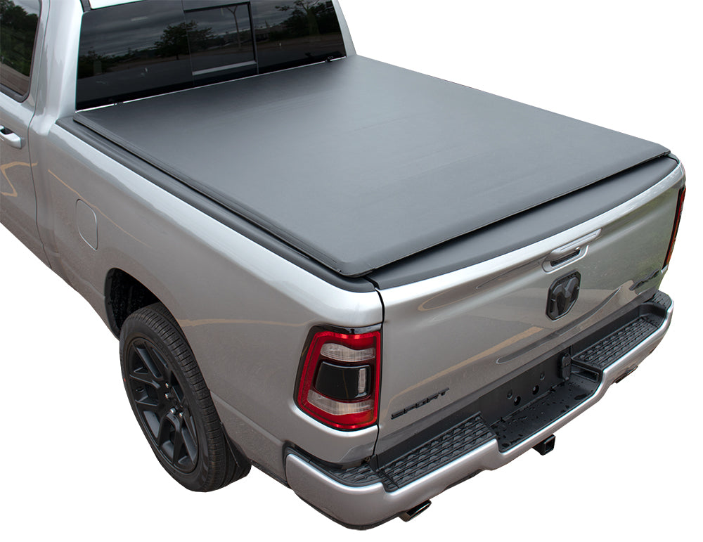 The Haylhan Soft Tri Folding box cover seamlessly integrates with your truck, providing an affordably priced tonneau cover that conceals and protects your cargo.